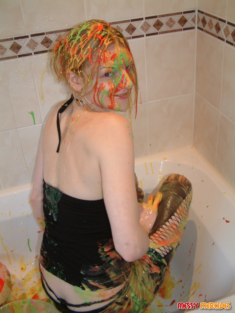 I love your impish grin and sexy looks, :lol: That looks like the beginning of a really messy time, great colour combo as well.