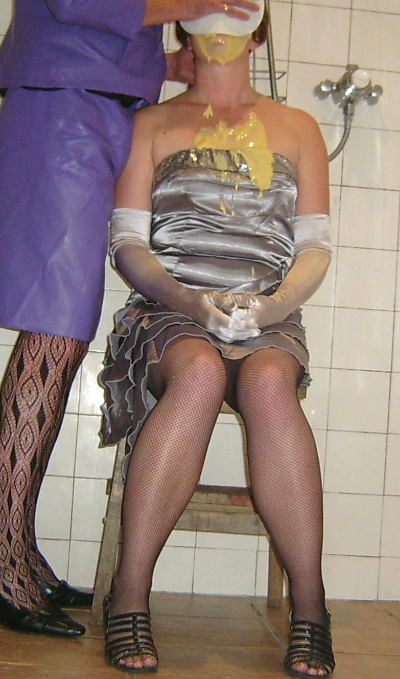 She is covering her face the cowardly woman. Next time rub loads of it right in her face. :wink: