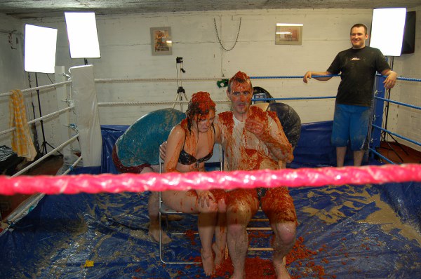 Dynamo and Erik were the definate losers and had a huge bucket of tomatoes over them! Dynamod face is classic!