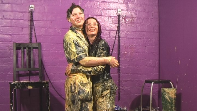 We've also added the after-shoot hosedown video too - watch the two ladies hose each other down with warm water, still fully dressed.