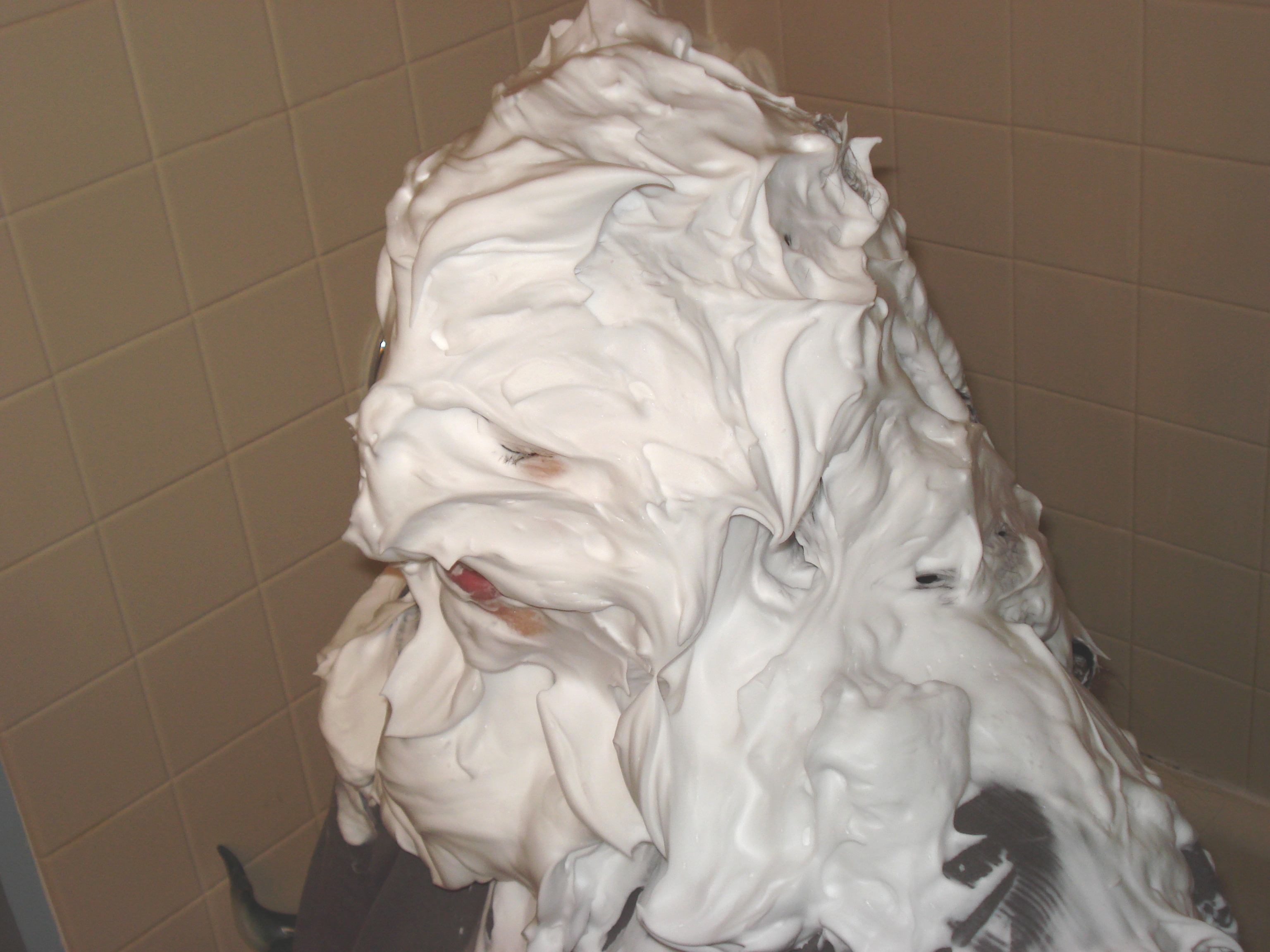Here is Goddess, pied with giant shaving cream pies. Any suggestions on how to retaliate to Sissy Jazmine?