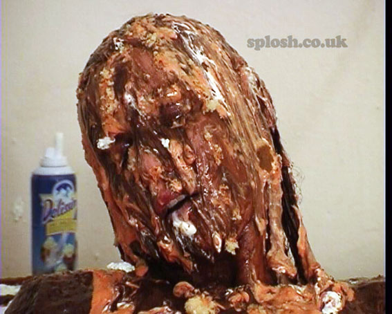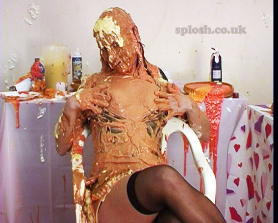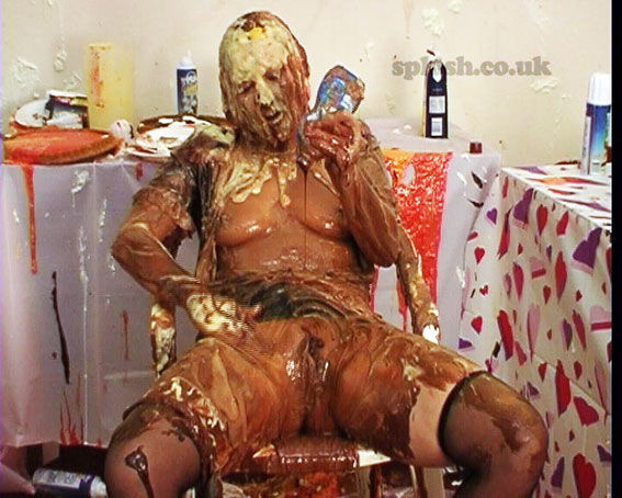After a washdown in custard, the pie barrage continues followed by a lot of chocolate. But that just gets Tracie hornier....