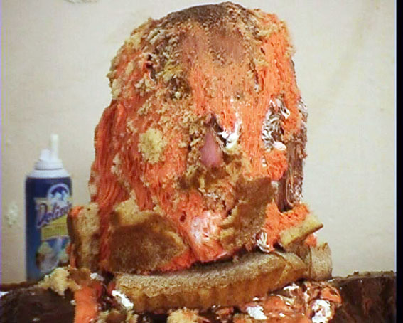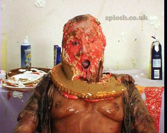 Even a huge pie right in the face doesn't stop Tracie from frigging herself silly! In fact soon her knickers are off and she's doing it unhindered and in full view of us all, bringing herself to a sticky climax before our eyes. Just in time for one last big flan!