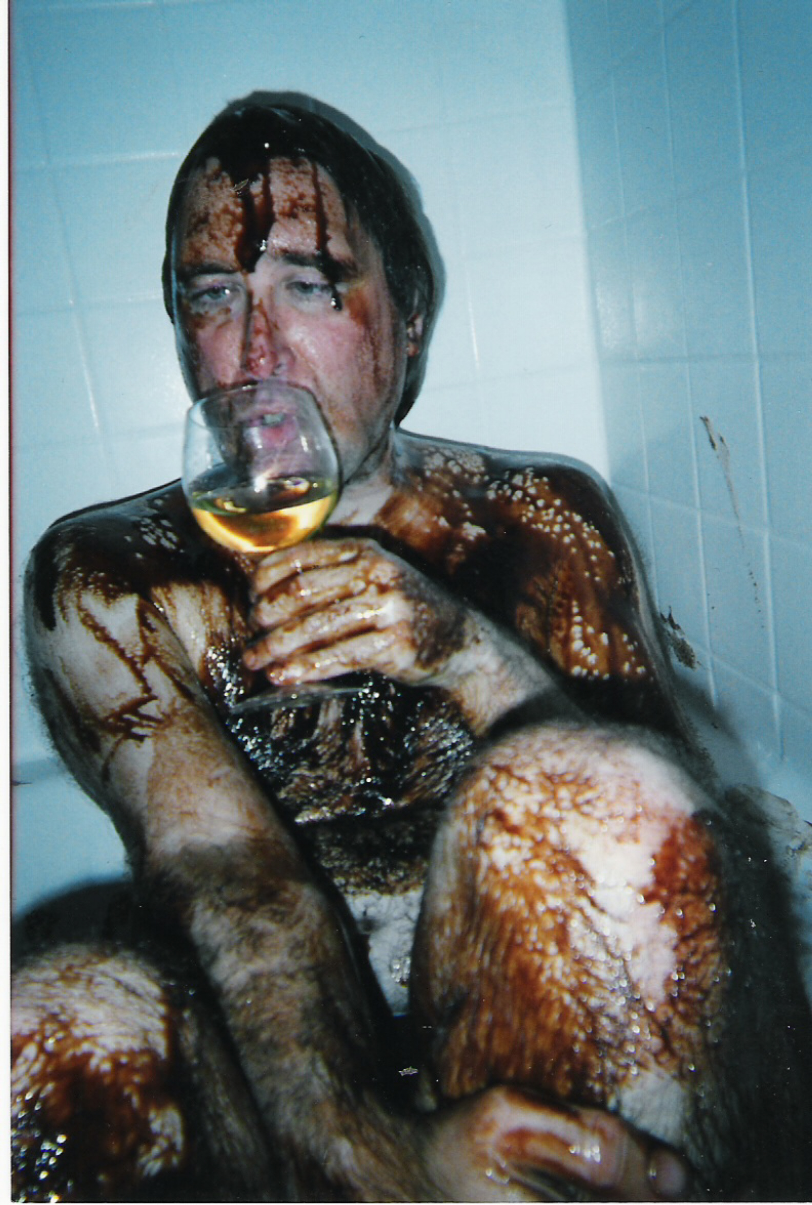 I think some of you might like this photo. It's me drinking white wine, while covered in chocolate! It was taken by my girlfriend, while we were enjoying a chocolate bath. Sorry guys, she's asked me not to post any photos of her!