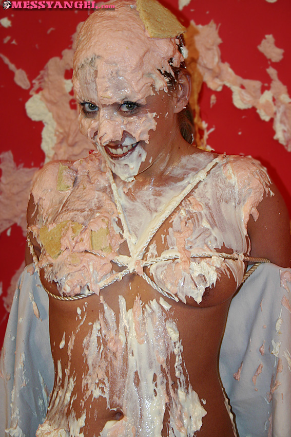 The latest update on Messy Angel features the irrepressible Karen who, whilst getting tied, & pied also gets rather steamy!!!