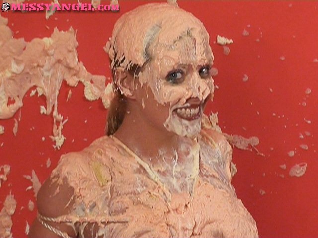 As we all know its difficult keeping Karen under control so we thought we would tie her to the chair and have some fun pieing her. Karen can’t keep quiet though and is soon egging on the pie thrower before slipping her bonds and enjoying herself amongst the cream and pie crusts!