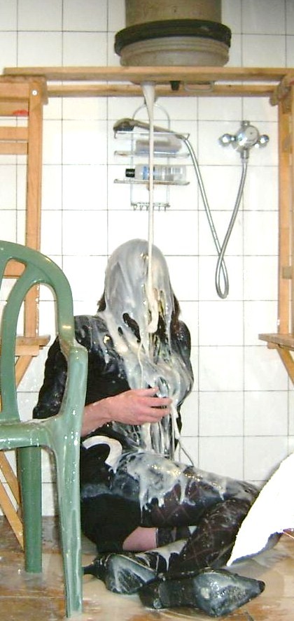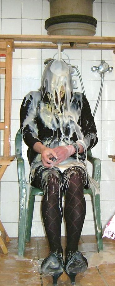 I love getting messy in black clothing,it shows up the messiness best.White clothes I find are best when wet as it shows the sexy underwear beneath!