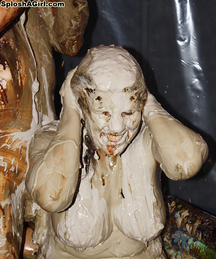 A little while ago Mucky Dave visited SploshAGirl. He and Gilly got rather stuck on each other - treacle has a habit of doing that doesn't it, then they both got covered in clay and had a lovely roll around. Here are a few pics.