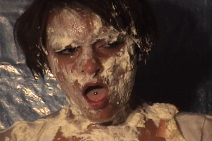 Busty boss Tosha is a boardroom executive in real life; she is also, she freely admits, often the bitch from hell! So we decided it would be fun for her to sack the entire staff, only to find herself tied up, pied, egged, covered in yogurt and strawberry jam and then made to masturbate before sucking off her deputy! Then as he fucks her from behind her face is rubbed into a cream pie, only for the foreman to join in the fun by insisting she suck him off as well! The two guys then spit-roast her before slamming a huge chocolate gateau in her face and - just to complete the degradation - filling her mouth with a banana before slamming her with their cocks until the sound of her cumming can be heard back in the boardroom...!