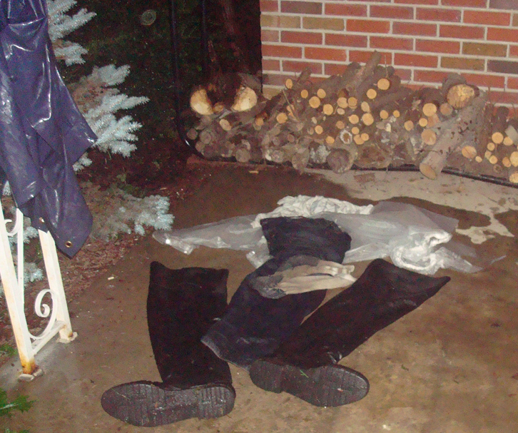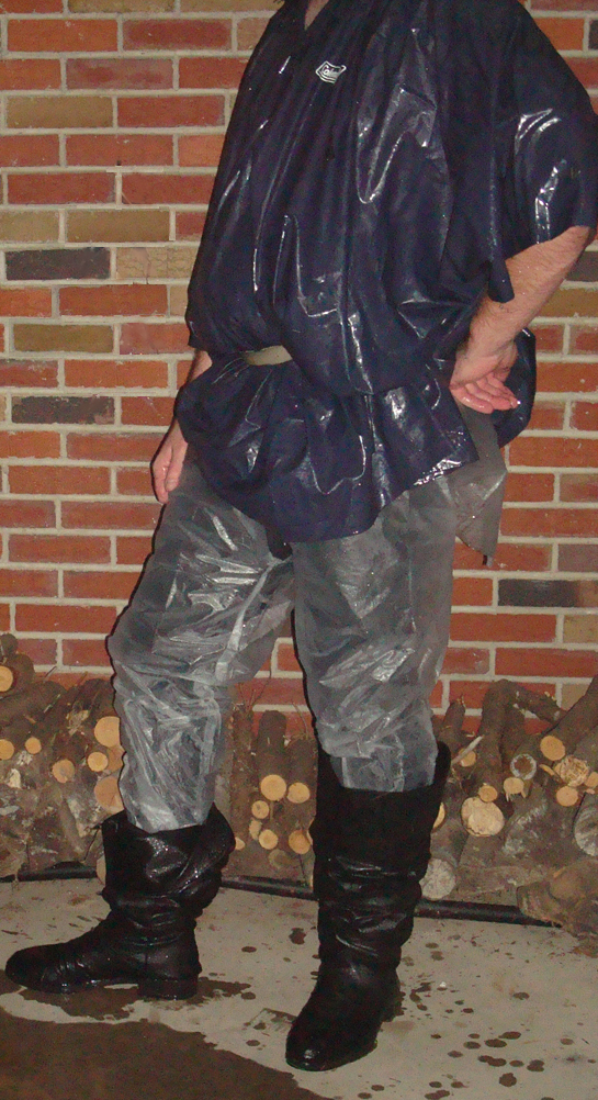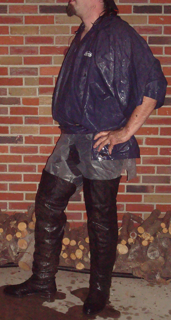 Started off clean and Dry. T-shirt, Poncho, jeans with waterproofs over tucked into my renfaire boots.
