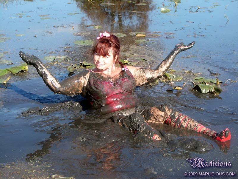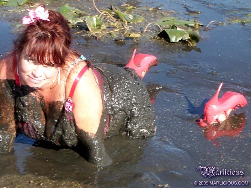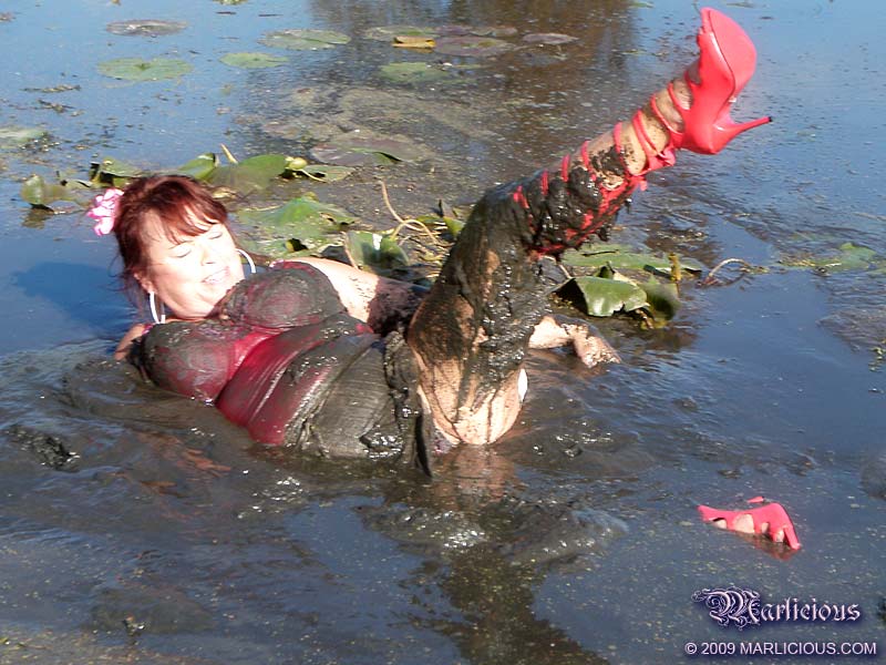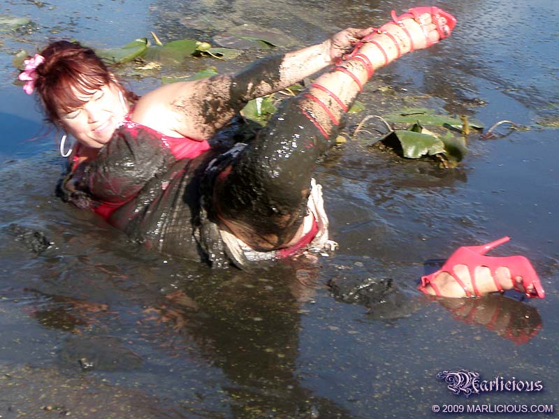 Marlicious now tries to crawl away and keep her shoes out of the mud, but it's a losing battle.