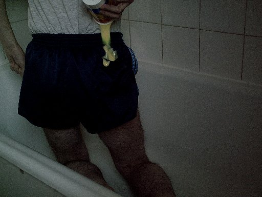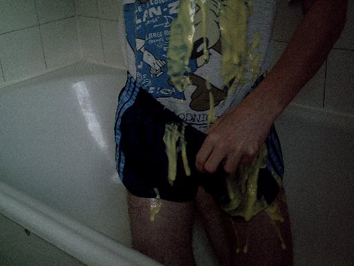 Hi, I said on another post that I was prepared to get messy with molasses on Friday, but I decided to do it tonight instead. I decided also to add custard as a bit of a contrast because my shorts were dark blue so I thought the custard would show up well.