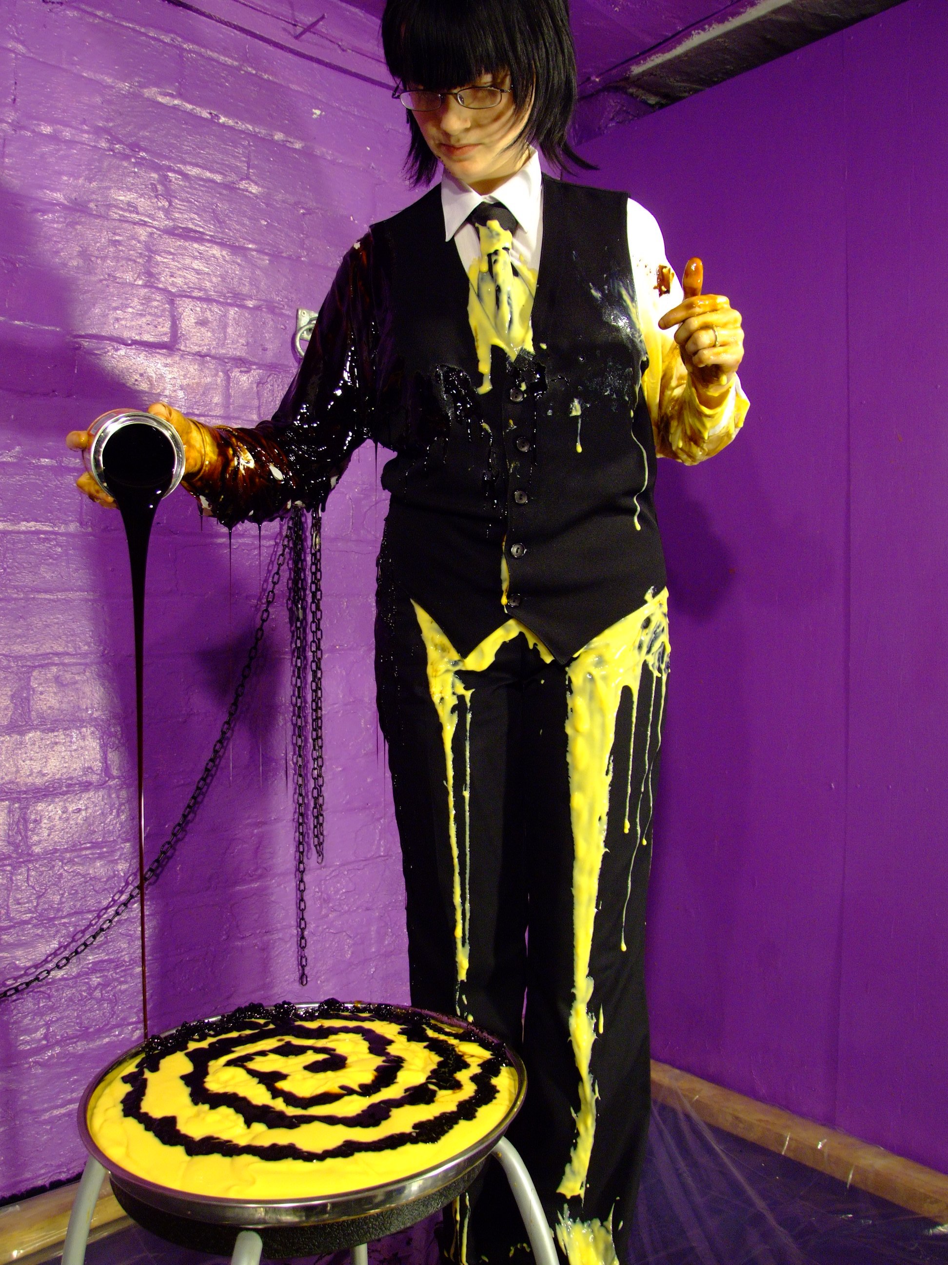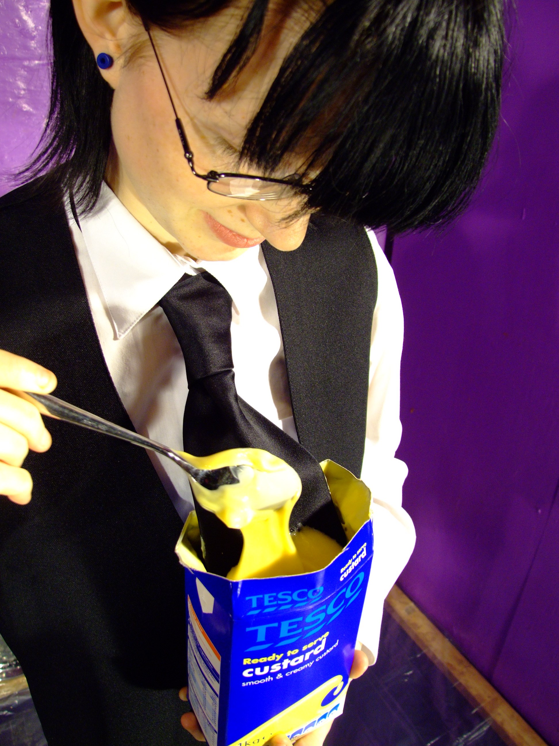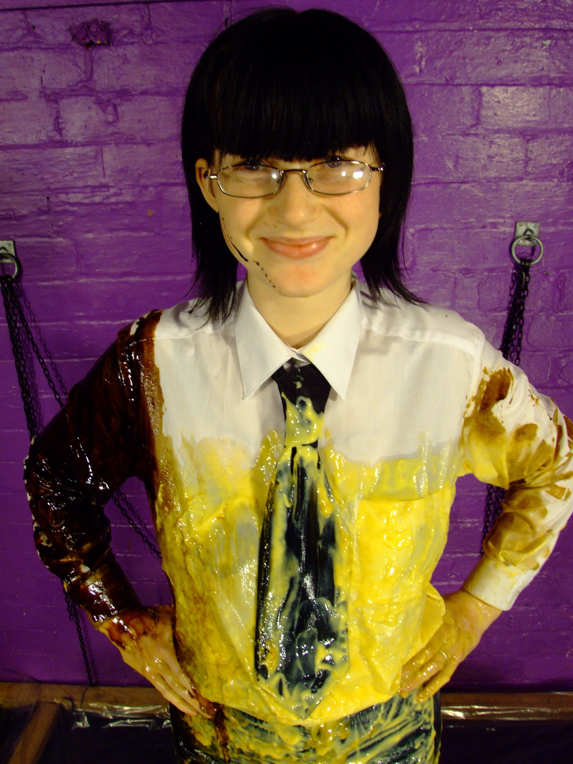 Squelch wrote:Hmmm..I like this set tooGreat outfit...in a similar vein to the snooker referee's suit mentioned in other posts. Is there any hidden meaning to her getting only one arm covered in black treacle??