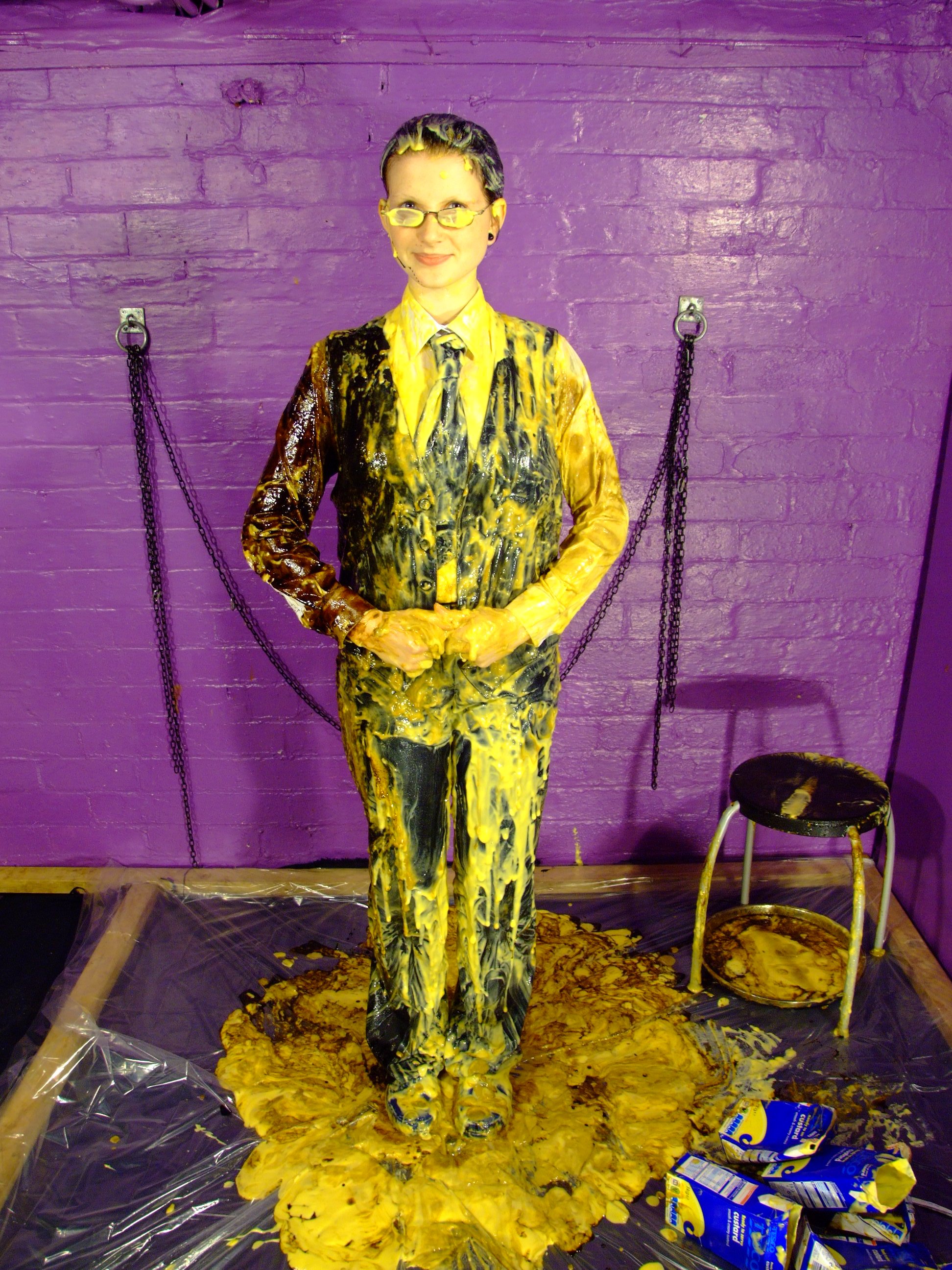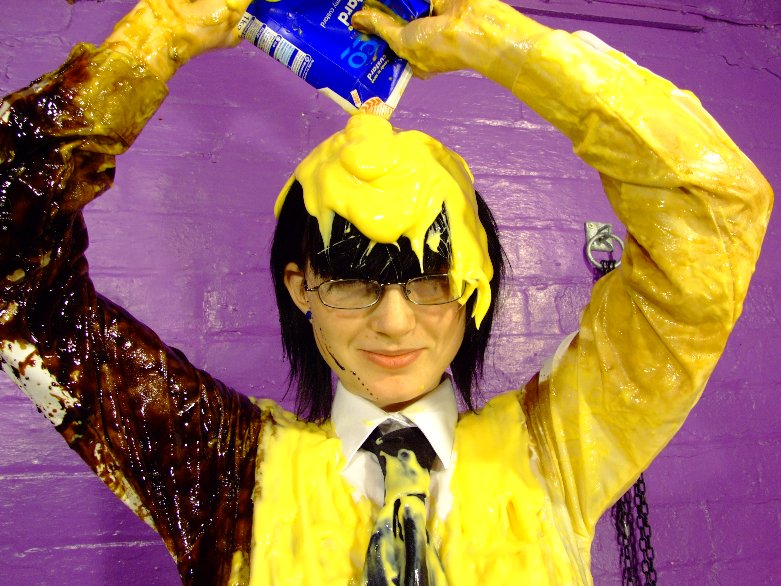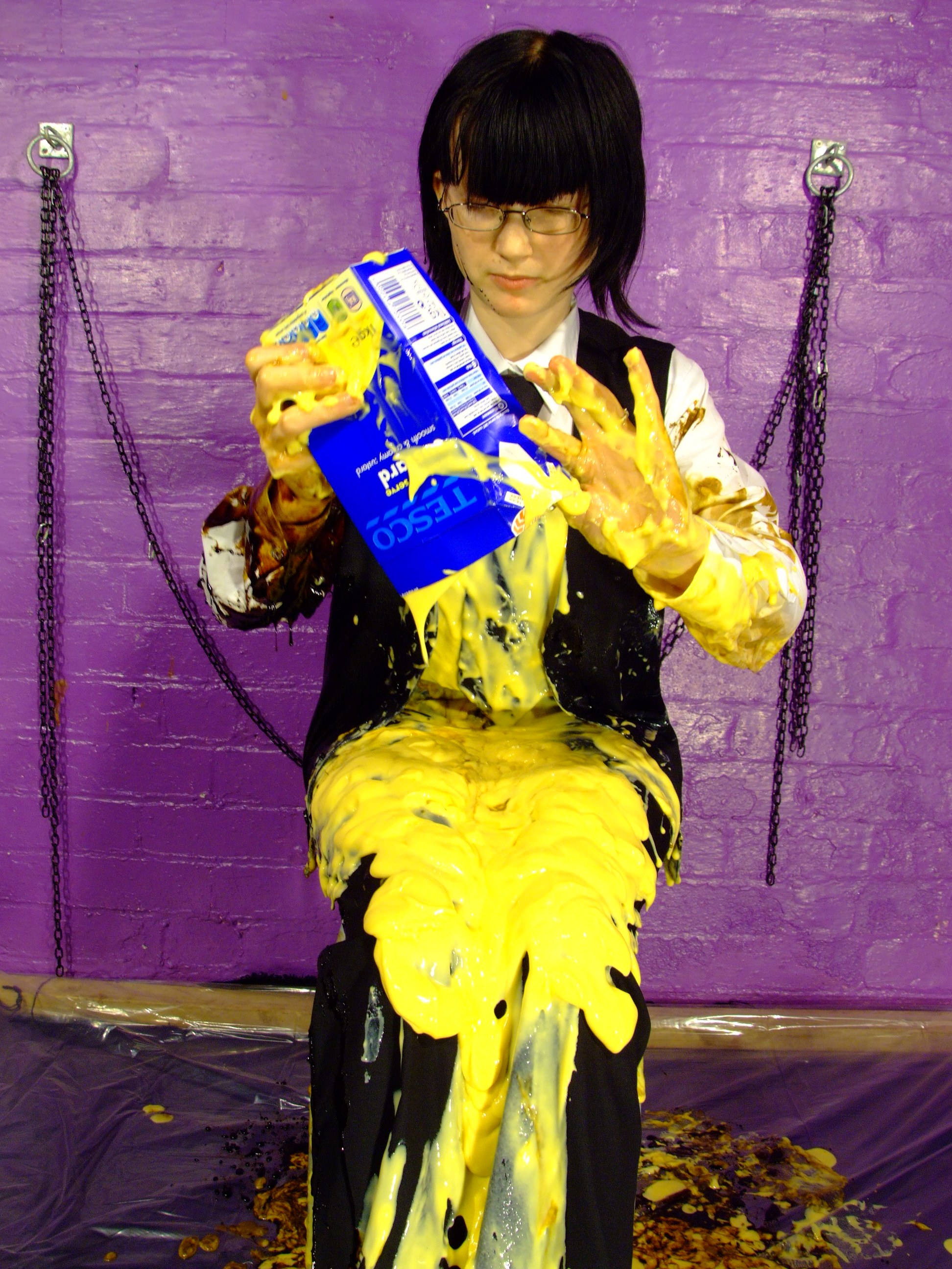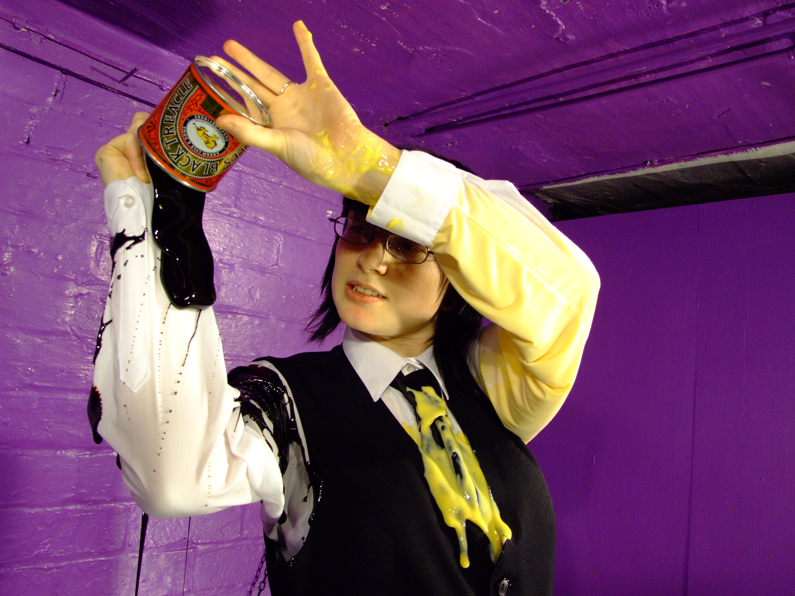 Squelch wrote:Hmmm..I like this set tooGreat outfit...in a similar vein to the snooker referee's suit mentioned in other posts. Is there any hidden meaning to her getting only one arm covered in black treacle??