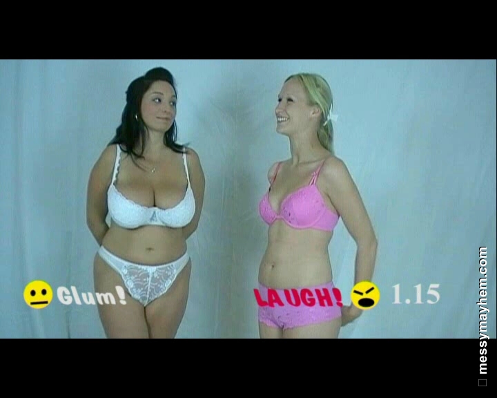 Our stars of the show this time are cute and lively blonde Annabelle and big boobed beauty Michelle. Our game of skill, dexterity and all round general lunacy, sees the plucky Annabelle trying to crack the stone faced Michelle.....