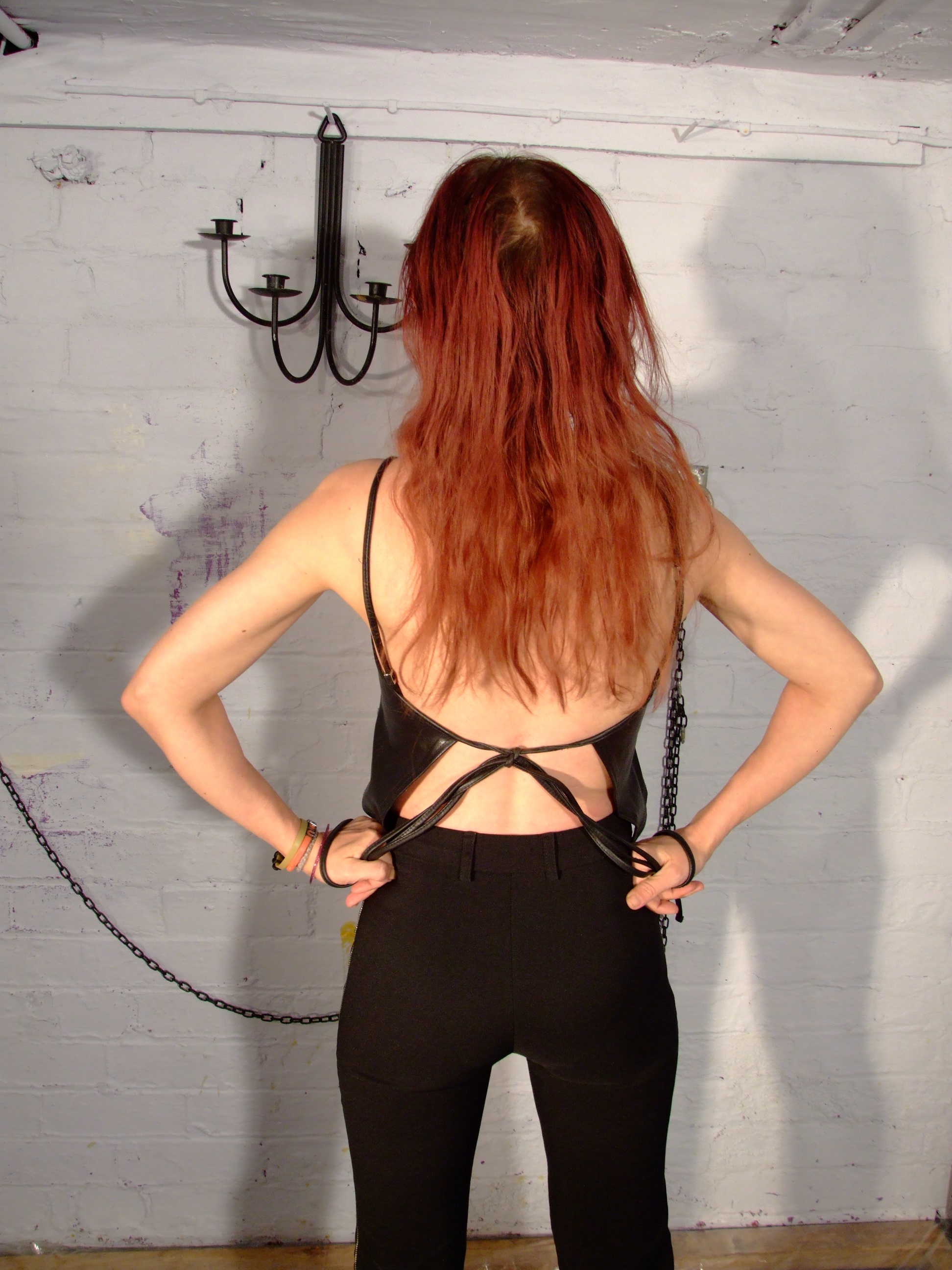 To get the bowl of trifle rolling (or is that being tipped into someone's dress? :D ) the first set features Lady Jasmine of Saturation Hall, dressed for pleasure in figure-hugging zip-leg boot-cut black trousers, a backless leather top, and knee-high black heeled boots, getting totally sploshed with milk and custard.
