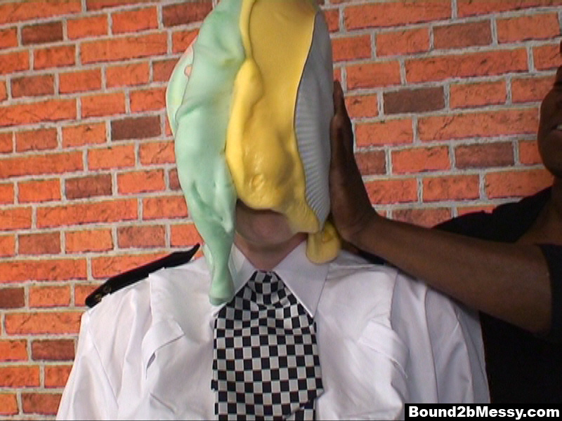 That's a mighty fine way to treat a police uniform, Fi certainly looks good in the outfit and Miss T does a perfect job of messing her up, Keep up the good work. I knew a policewoman who was at the poll tax demonstration in Brixton in 1990 who had a whole gallon tin of white gloss paint thrown over her. When she finally got back to the police station the front of her uniform had dried solid, The jacket and skirt stood up on their own in the locker room