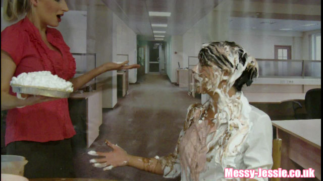 When I find a stranger in the office going through paper wrk and throwing it away, I assume it must be the the new temp. In the offices tradition of treating incompetant staff, I unleashe a barrage of pies and slime.... Only to then be told that the 'temp' is actually Ruby the Regional Manager! This can only mean one thing for Jessie; A disciplinary of the messy kind!