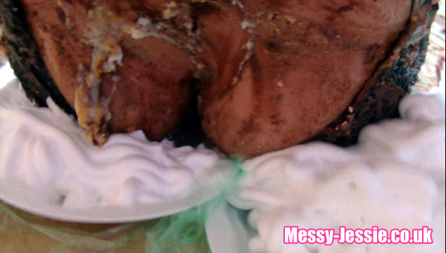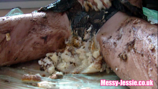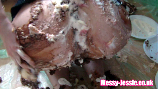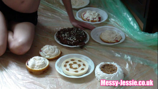 This is one of my more saucy vids... I sit on a chocolate cake, cheesecake and creamy pies! I rub the cakes and cream into my boobs and all over my body!