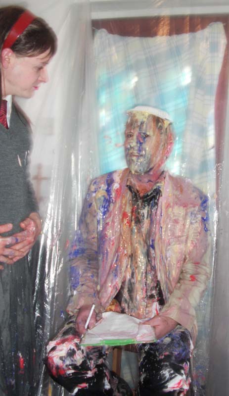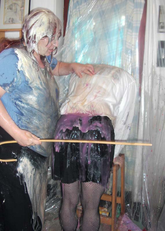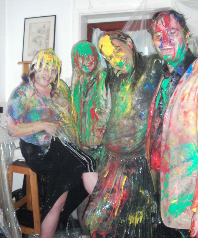 Satinic Rites - Our final messy shoot, and as Andy said, a piss funny one. With all of us dressed in satin of some kind (from posh frocks to pyjamas), I was the high priestess inducting a group of initiates into the "church of satin" via a bunch of daft oaths accompanied by a ritual gunging. This one got really out of hand towards the end, not least between Tits and myself. :)