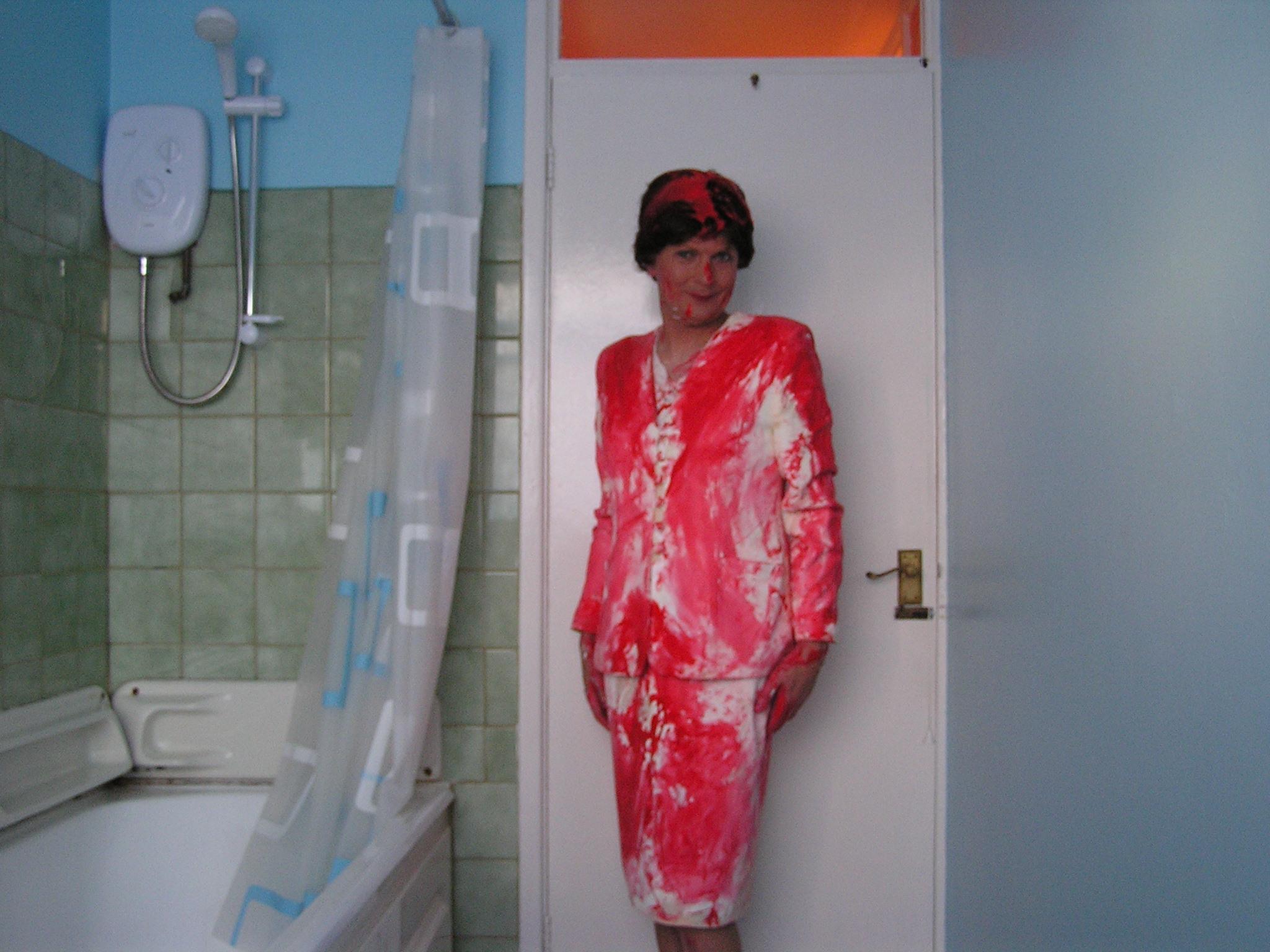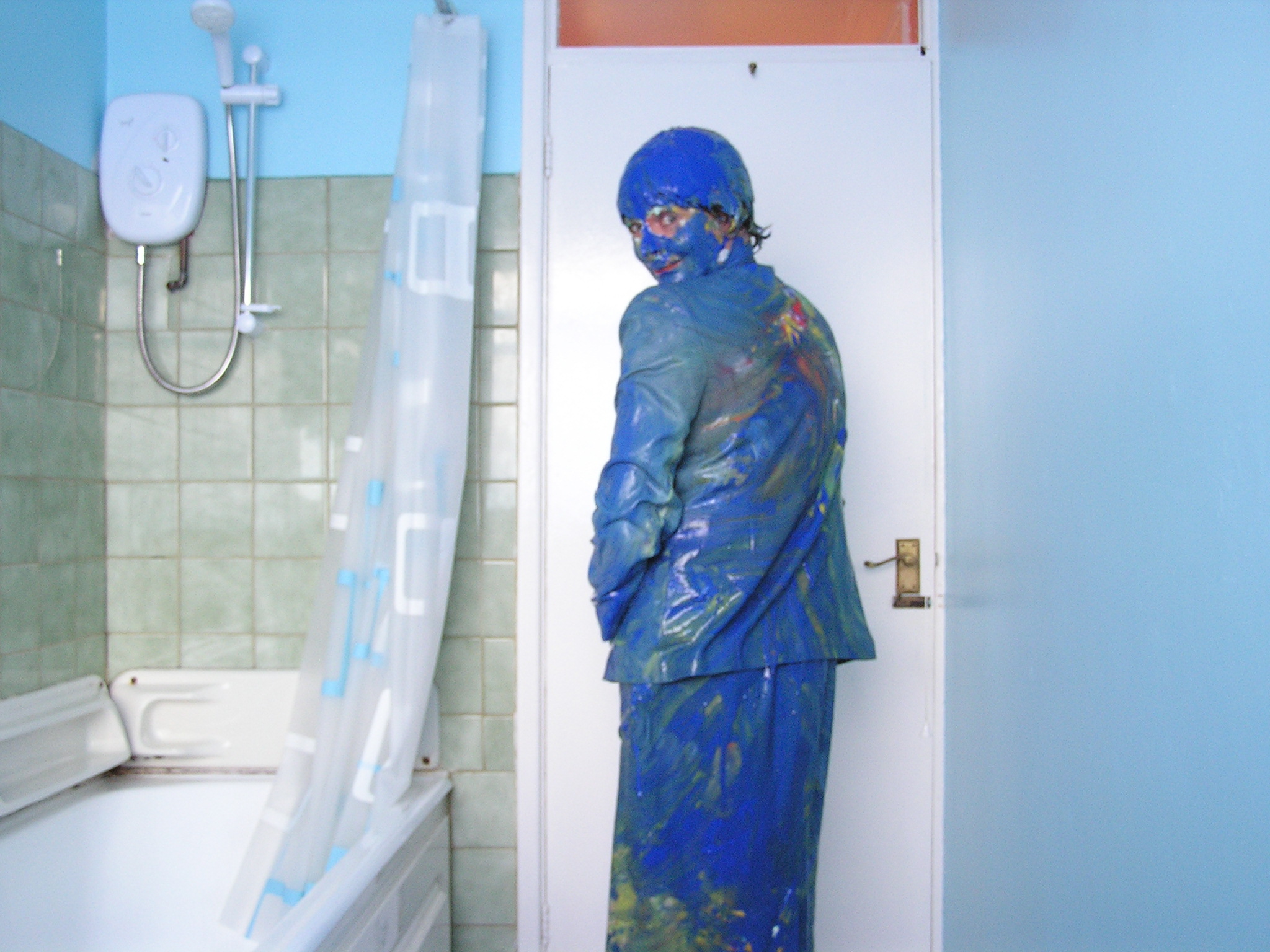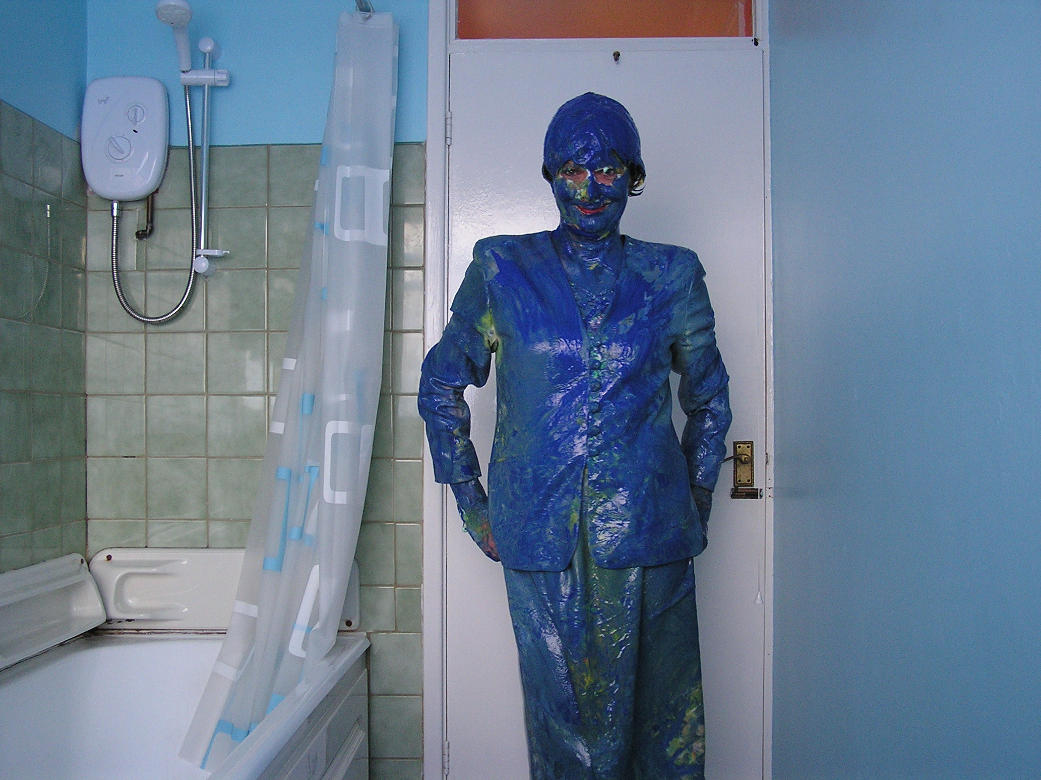 After a stressful day in the office I decided to take out my frustrations on my work suit!! What better for destroying a suit than paint! White,red,green,yellow and blue.