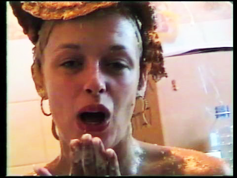 In the 20 minute long Layla in Leather, the sweet young blonde comes home from a shopping trip to find her boyfriend looking at the Splosh! website and clearly enjoying it. So much so that without letting her take her cream leather jacket or thigh boots off, he starts breaking eggs inside her top and down her panties. Shot by them in their own Devon kitchen, Layla is gently sploshed in her leather suit with LOTS OF KNICKER FILLING, BOOT FILLING and an attempt at CAKE SITTING. Nice nudity but my favourite bit is when she has her thigh boots emptied over her head! A real old fashioned amateur film from the days before Youtube.