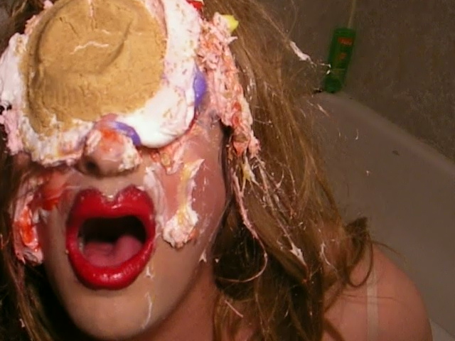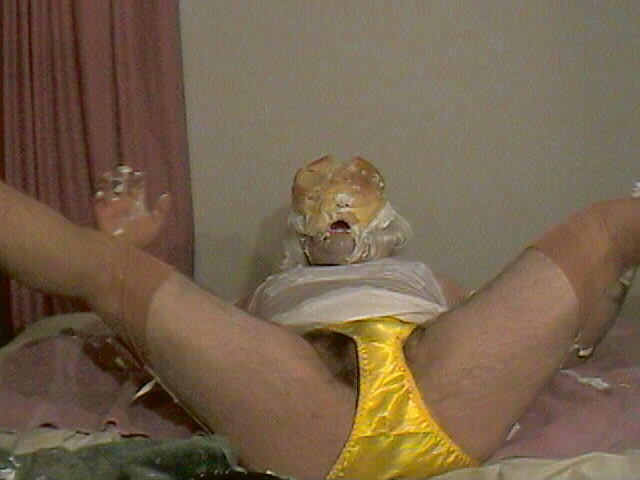 transvestite pied in the face, in lingerie,cream pies with whipped frosting.
