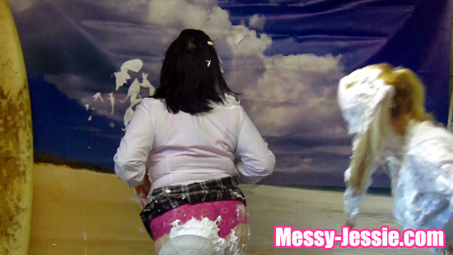 So, after one win by myself, it looks like I'm on a roll! I play against new girl Missy and I win!!! So I get to gunge missy with gustard and slime, which I enjoy very much! But Lacey feels that she was dealt an unfair hand and grabs so gunge and pours it over me! Needless to say, a gunge fight ensues and we all end up very messy indeed!