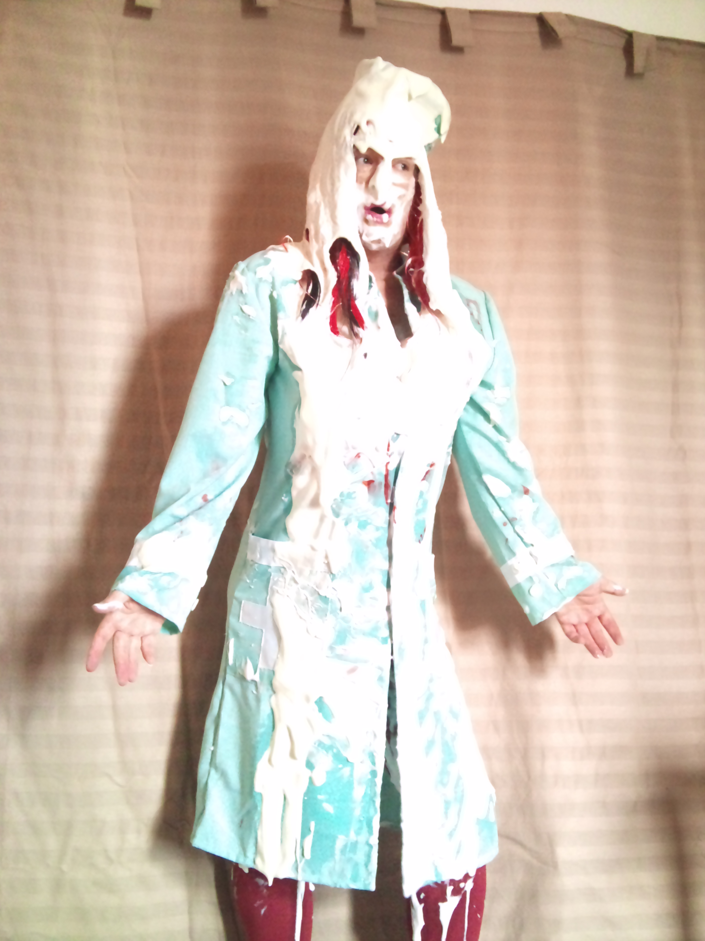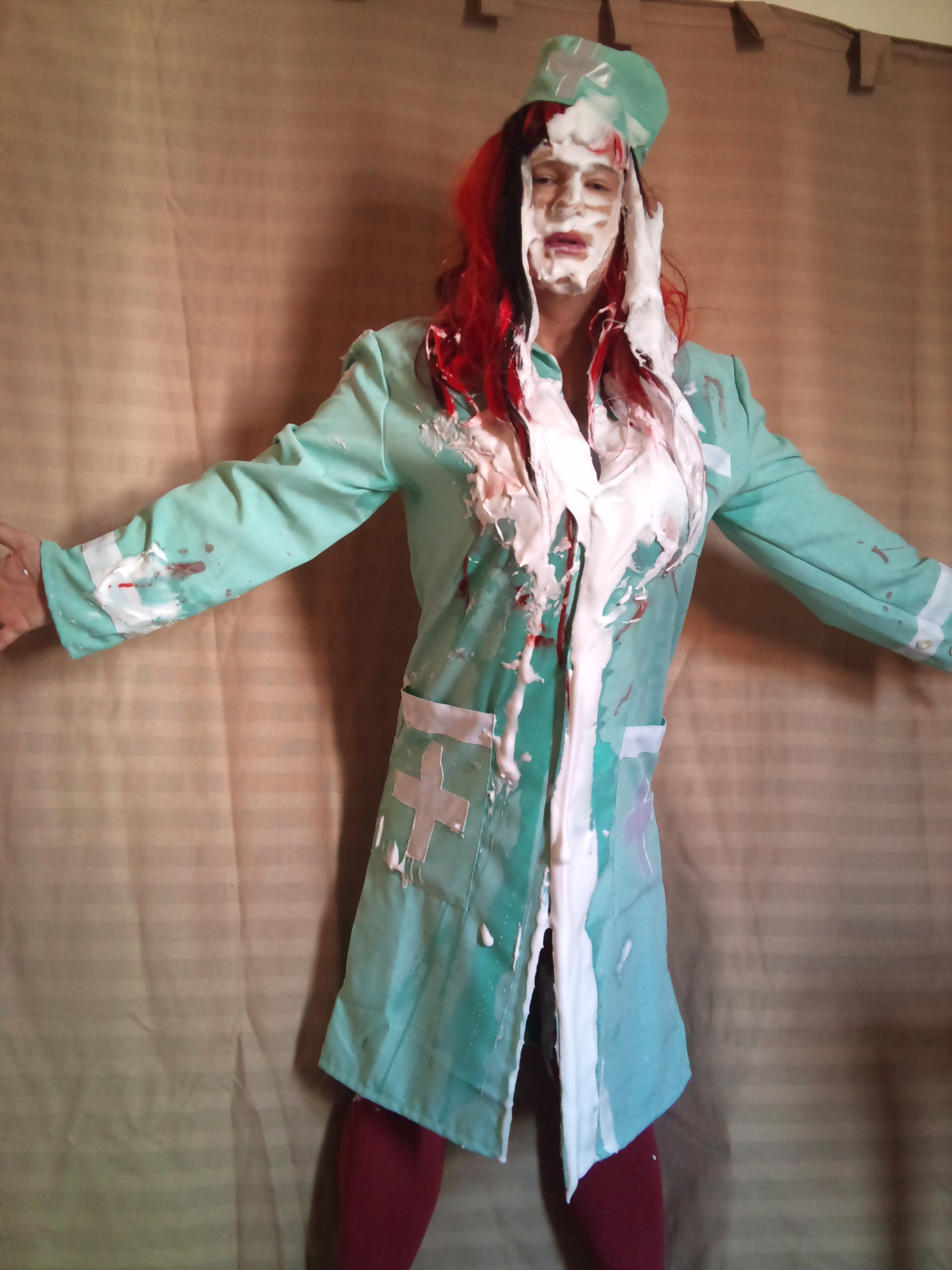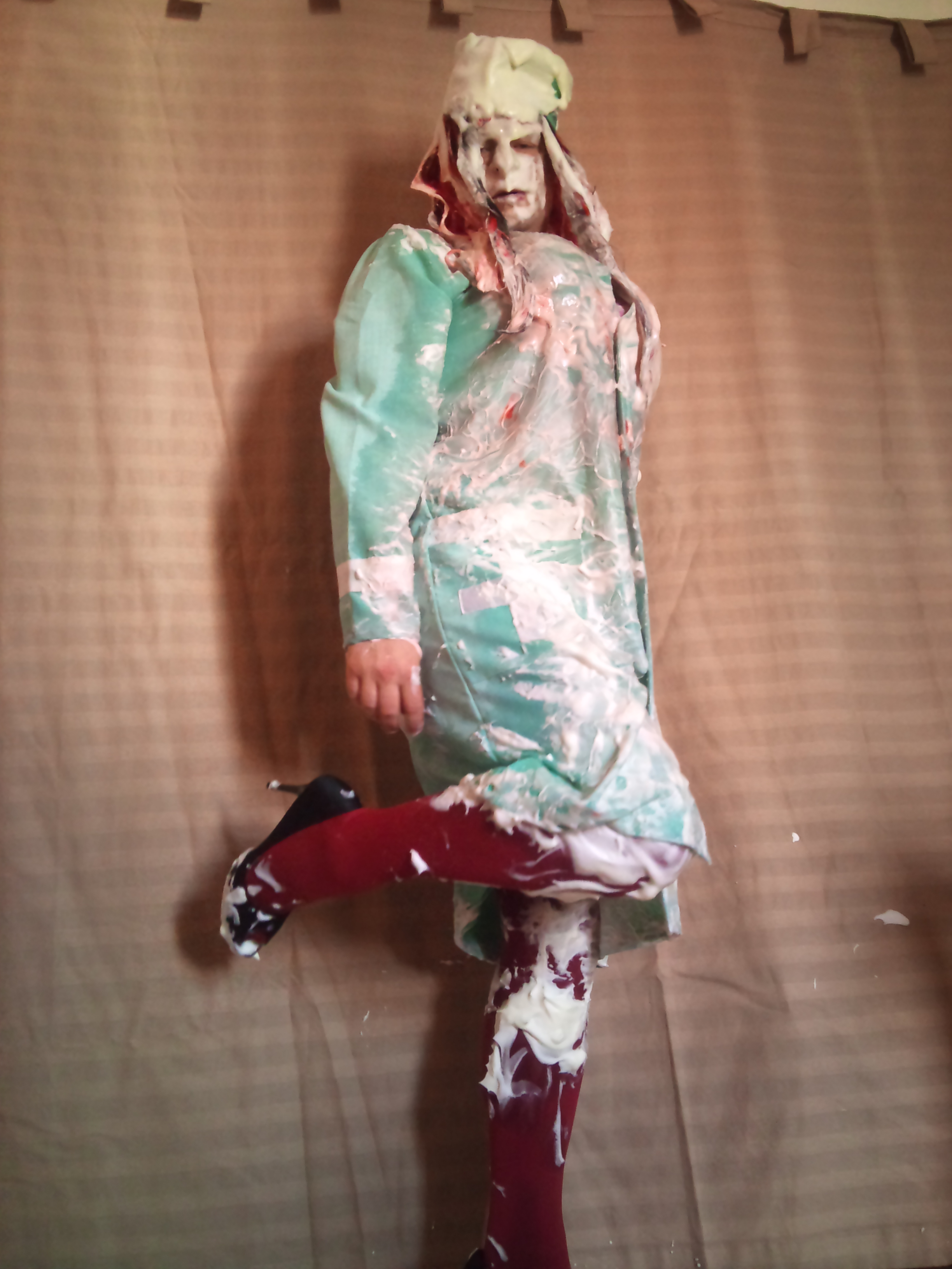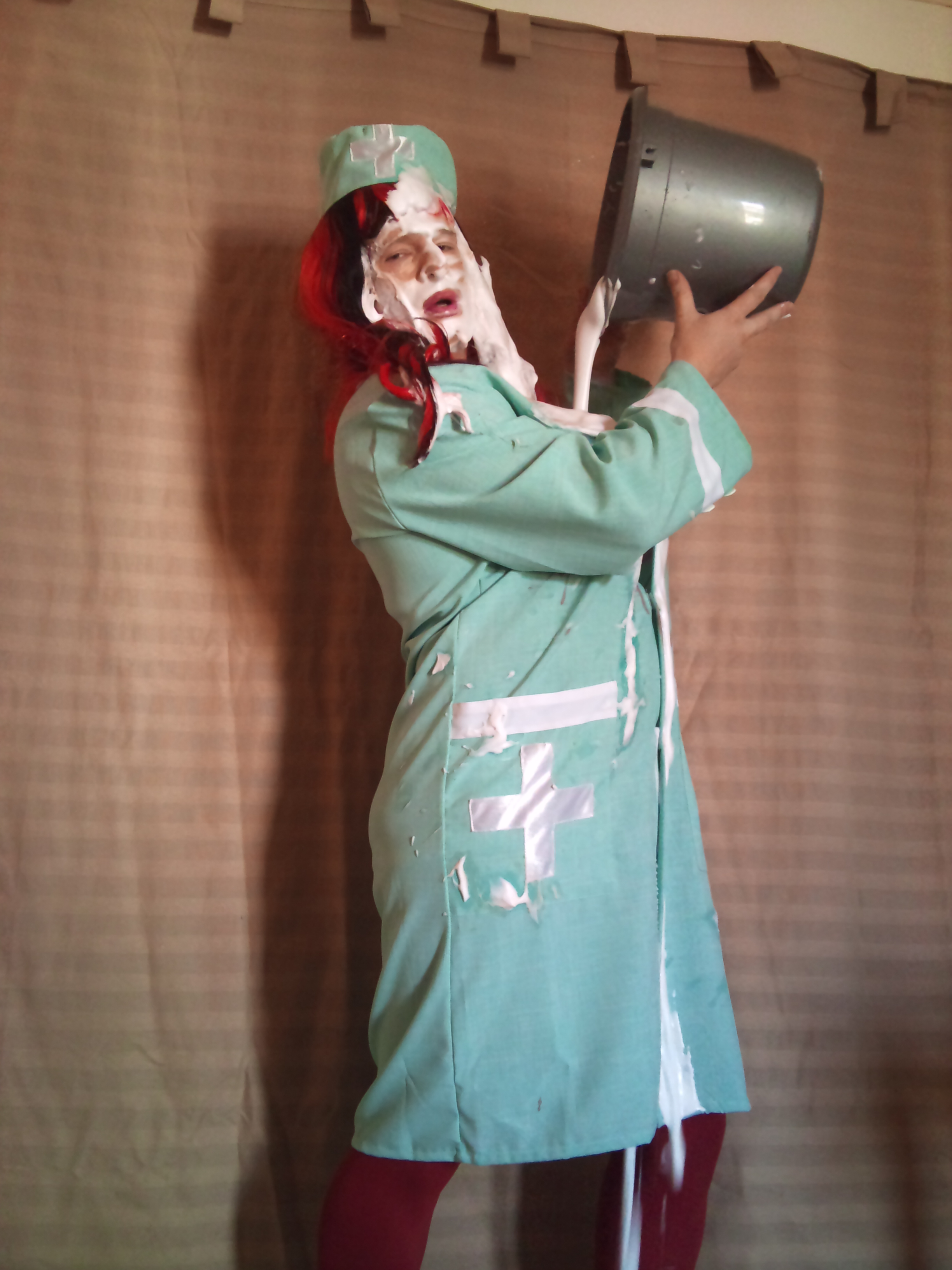 :D Wow great stuff, hobgoblin, i just love ladies overalls /workwear getting on the receiving end of a mess, particularly like the bucket og goo down the cleavage. Solo photography has always been a bit of a pfaff, most cheaper compct camera,s have a setting for 2 photo,s with a gap of 10 seconds, i would love one that does 5 or 6 in a given time but that involves a much dearer camera.Getting the light setting just right is a bit of playing around with the settings and can take ages to get right, but your pics are really good so good luck with future sessions, maybe more white coats/overalls please. cheers :D