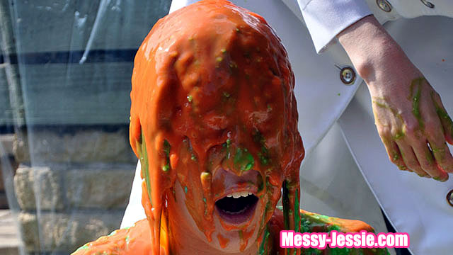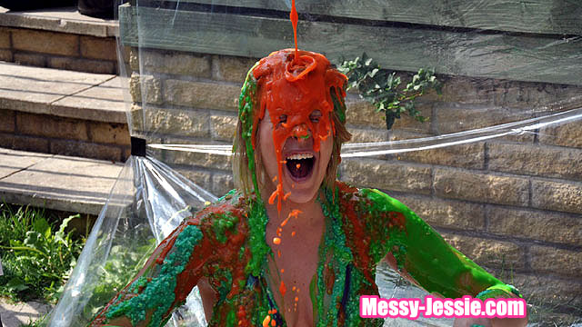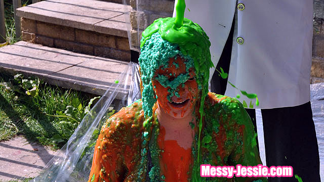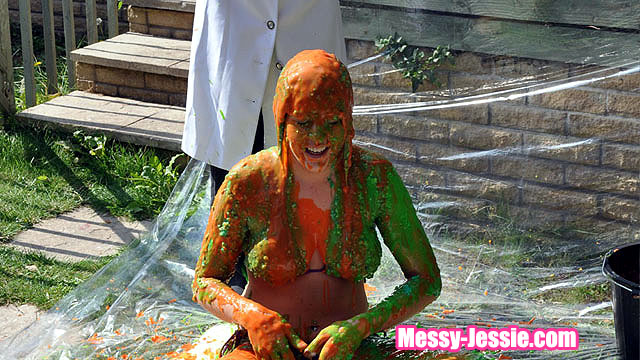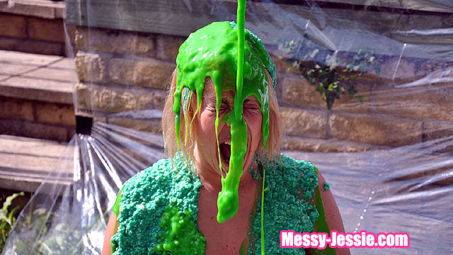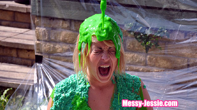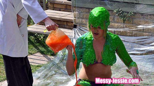 Professor Jessie has been creating new types of slime and gunge and needs to see how it feels. So Ami is the guinea pig! Ami wears a purple bikini and slowly gets covered in green sliem, lumpy green gunge and bright orange slime! Ami preferred the smooth slime, but I think the lumpy gunge was just as good! What do you think?