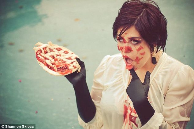 But one woman was so insulted by the company's approach that she has entered the competition in her own parodying style - submitting photos of herself gorging on or surrounded by stereotypically high-calorie foods.