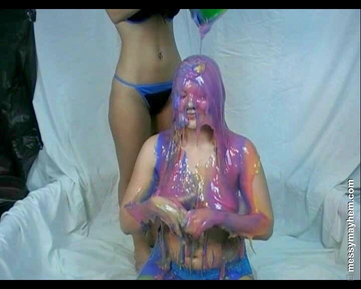 To give you a bit of background Shay arrived first as Jess was stuck in traffic. After texting Jess saying “hurry up bitch I want to gunge you” Shay joined in the plotting for our first game. A simple game of hangman, we were trying to think of a word for Jess to guess and Shay (being Welsh) said it would be funny to use a welsh word to make it really hard for Jess to get and suggested the longest place name in Britain (a Welsh town) and like fools Jon and I agreed. It contains no less than 57 letters! Needless to say the game took forever so I have cut it down in the clip to give edited highlights to save you dozing off! The question is did Jess get hung and gunged? Or did it all horribly backfire for our sexy welsh babe? I wouldn’t recommend Welsh Hangman as a game but it did result in a rather cracking gunging with the loser copping blue, yellow and pink in rather large amounts.
