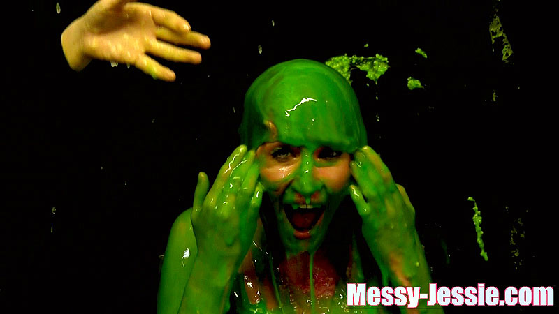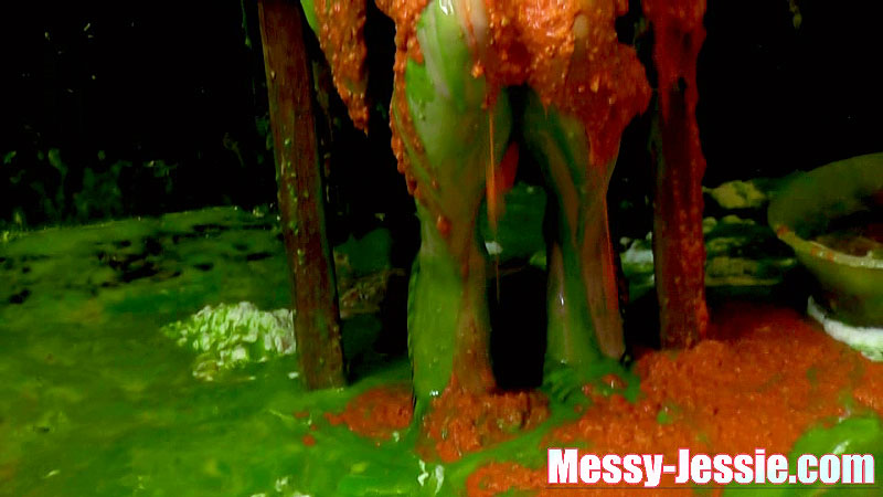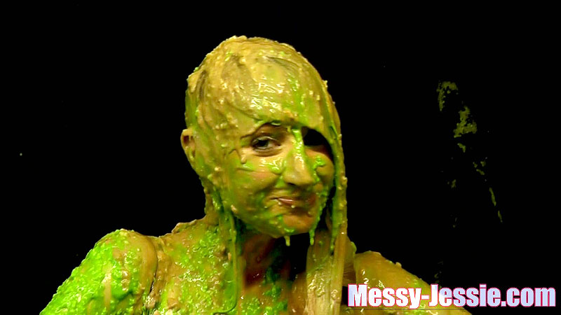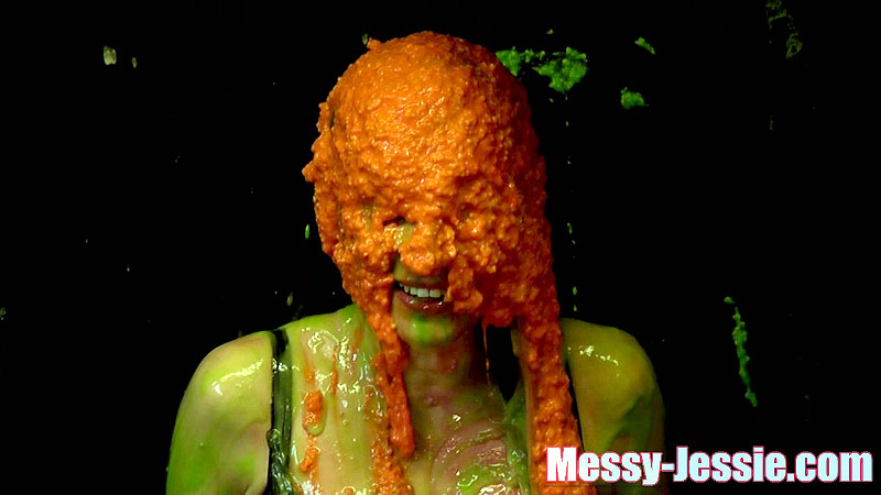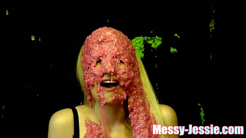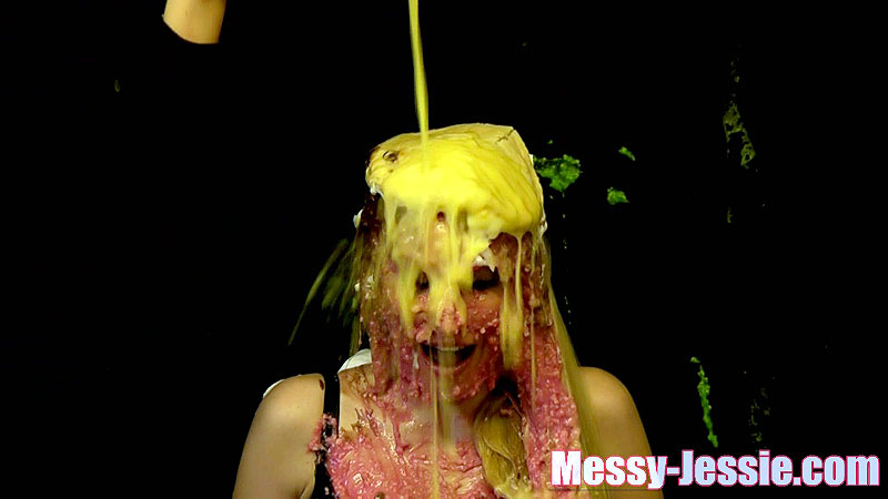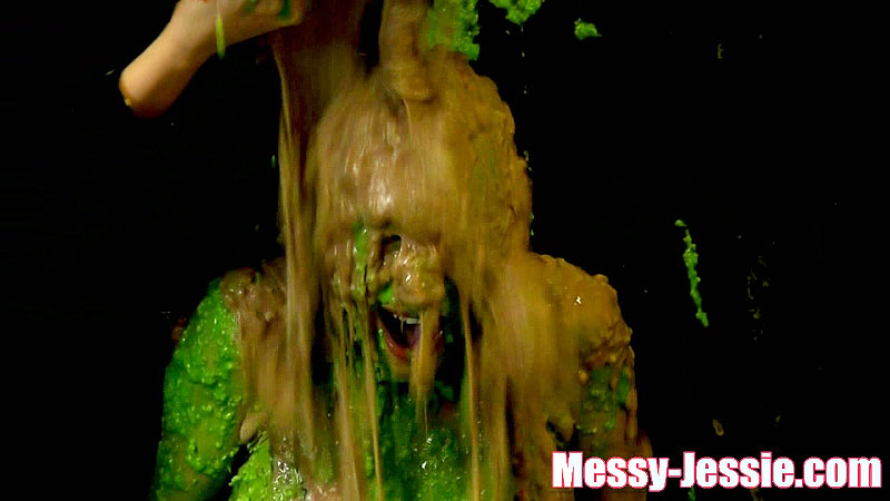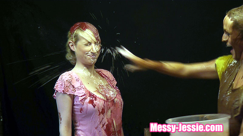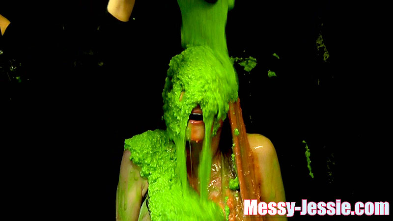 In my pretty white dress, Louise chooses to go for classics such as pies, custard and gunge. There is thick, lumpy pink, orange and green gunge, which all look and feel incredible! Louise also used smooth slime in pink, orange and green and a bucket of custard!