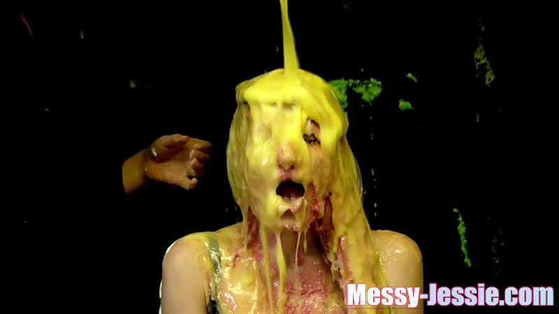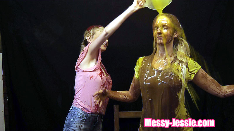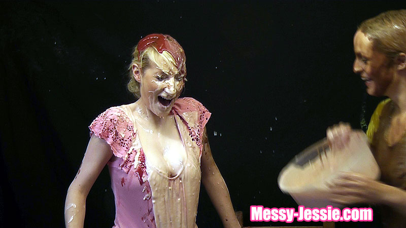 Once all the pies and gunge are used up, I am totally covered! However, Louise decides to get the bucket of slop from the prvioe sketch and tip all over me! The bucket contained ketchp, curry sauce, chocolate, angel dight, pie crusts, ice cream and allsorts of other things! I would go as far to say that Louise has beaten Annabelle!