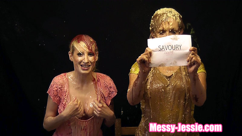 Louise and I play a new game... 14 envelopes, 7 with savoury inside and 7 with sweet. We each take it in turns to pick an envelope and open it. Whatever is in the envelope is what we get to pour/throw over the other. So, if I pick chocolate, I pour it over Louise, if she picks gravy, then she pours gravy over me!