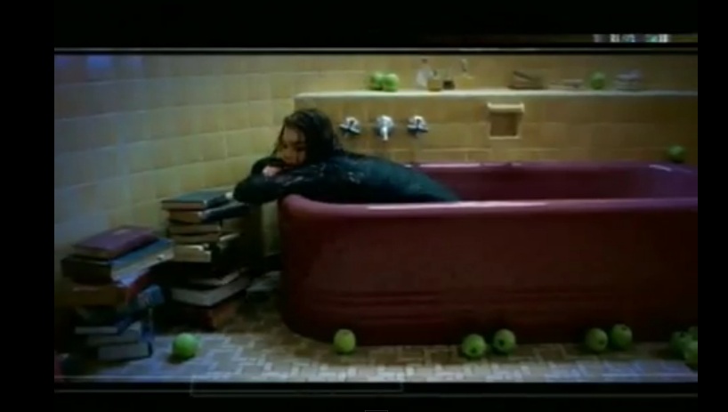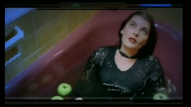 Ambient trip hop goth olde worlde latin song with an amazing array of beautiful intelligent women in gorgeous dresses and one bathigng beauty starting her Halloween bobbing for apples rather early in a rather stunning black dress ..