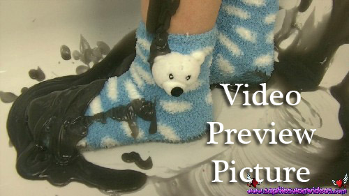 Here's some teaser samples from my latest new messy video added this week to my messy video website. I have heaps of fun getting covered in black slime in this new video. I flood my white t shirt with black slime, fill up my cute panties and soak my cute socks with black slime. When my cute outfit is completely drenched in slime I take it of to reveal my 30E Boobies :D and have plenty of fun with them in all the goo :P