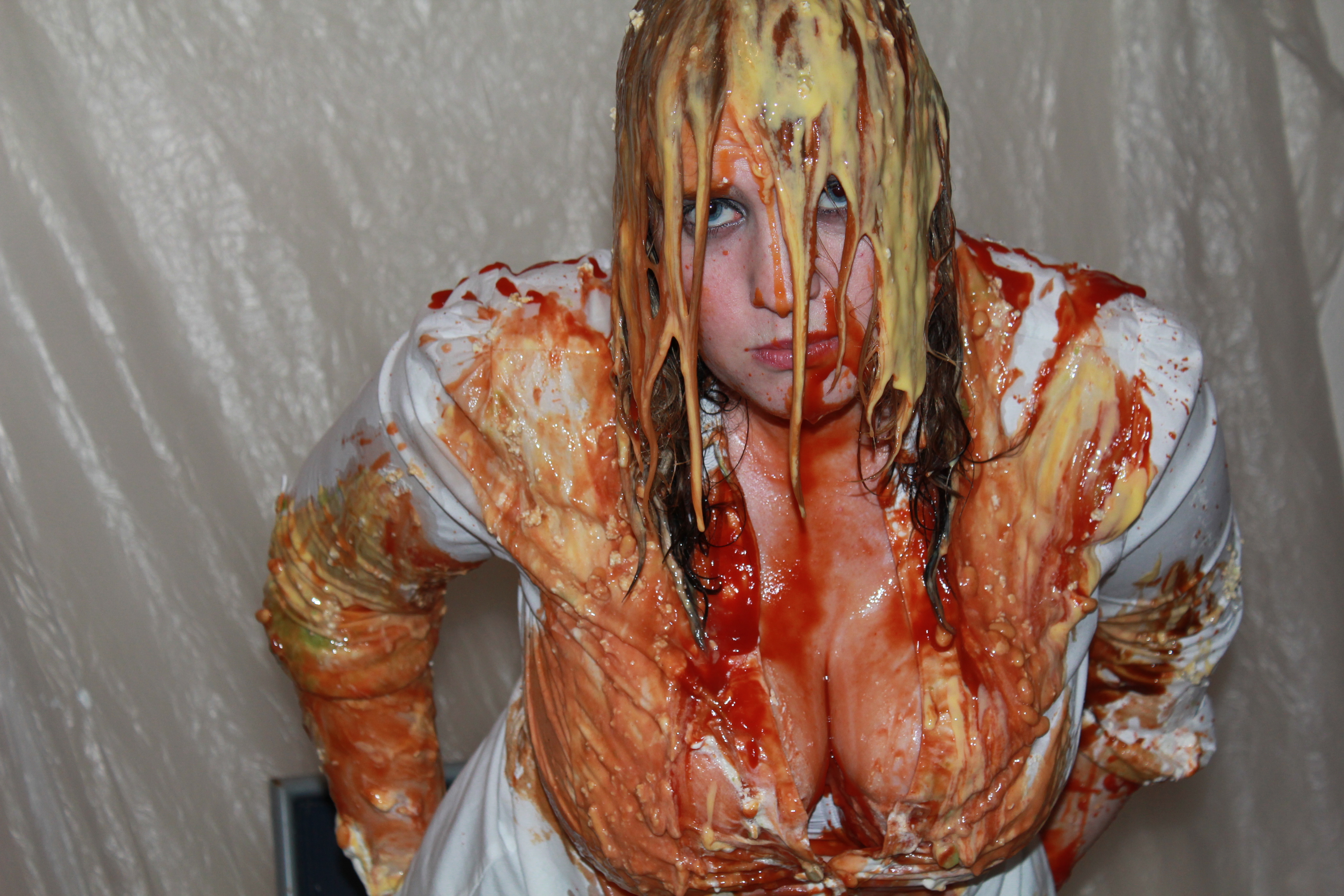 Fantastic pictures of a messy lady showing her fine cleavage! Please keep em coming! :lol: