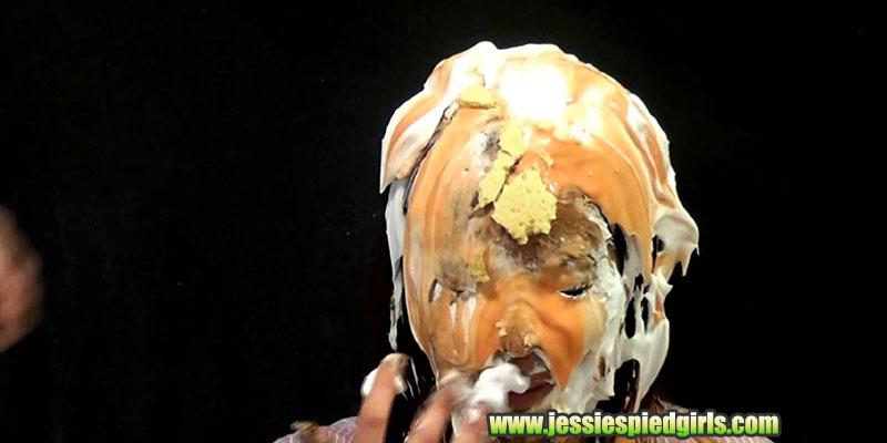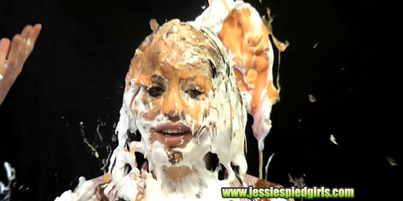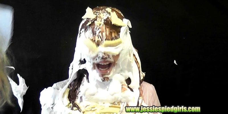 Ami picks 'recent music' as her topic and I ask her 9 questions... How many did she get right? Well, she recieved at least 8 pies!! Her smart shirt and trousers and beautiful hair ended up all covered in pie