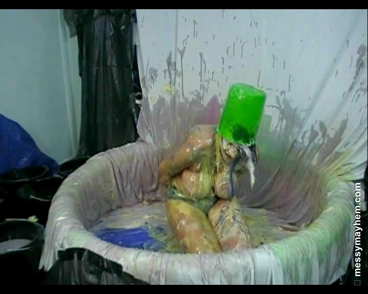 Upon pressing of the Emergency button Demi was rendered a little bit more manageable....she had her hands cuffed behind her back and her bra seemed to disappear in the process unleashing her quite sizeable assets. Let’s just say that Karen and Brook were not in the mood for being nice and took full advantage of this situation. Firstly Demi is subjected to several pies (banana & strawberry flavour), she is then made to stand and have custard (that is rather cold judging by Demi’s screaming) poured into the front and back of her knickers. She then gets some gunge and told if she can’t get free in 10 seconds she will get gunged again. She failed miserably and after the second lot of gunge Brook and Karen retire to a safe distance with Demi shouting to be let free, however neither Jon or Bob were feeling that brave so she just gets left there. Maybe we should have used a gag too?