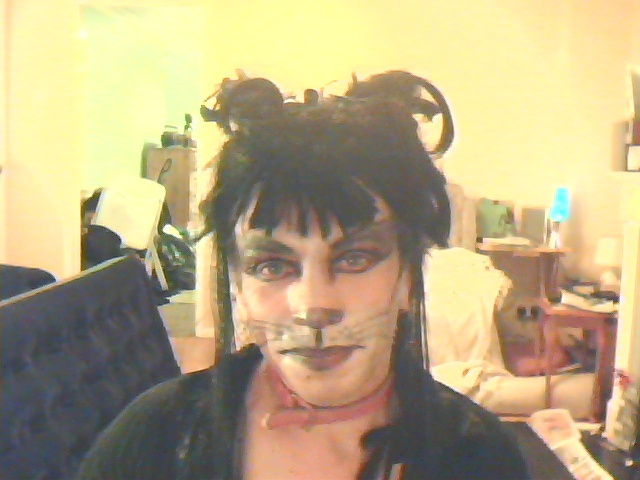 After a few drinks my planned session took a slight diversion,,i really couldnt resist it,so ,dressed in a sexy khaki mini-skirt,black stockings ,corset top & stillettoe boots i felt something was missing,a little black nose & whiskers lol,,loved doing this,it really put the fun back into wam :)
