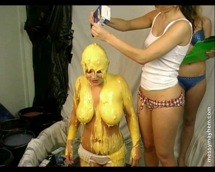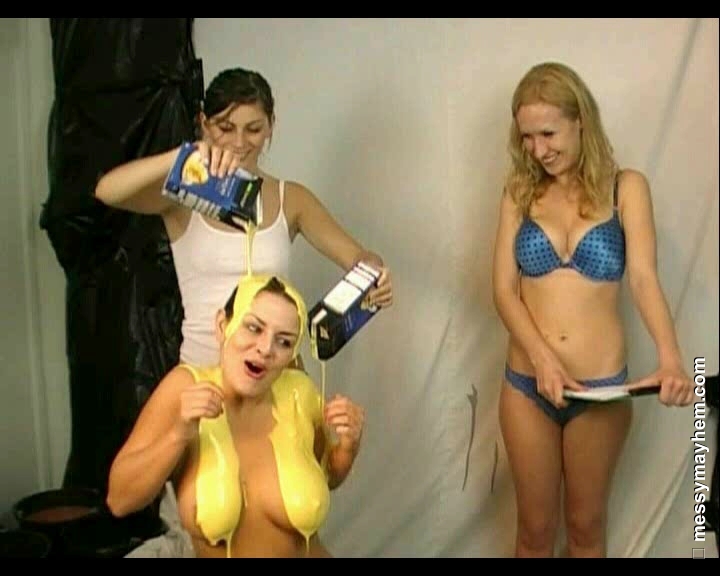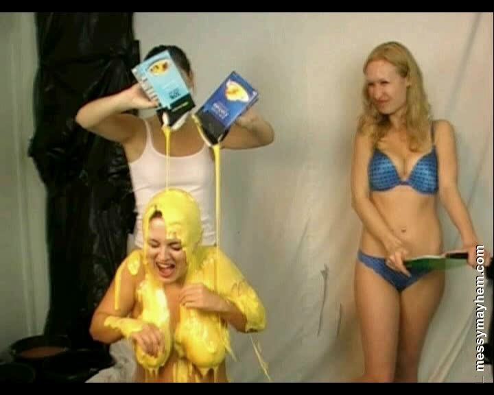 A couple of weeks before the shoot with Candie and Nati, Annabelle got in touch and asked if she could come and play too. She’d also thought of a game – her own version of the quiz show hosted by Davina McColl the Million Pound Drop but played with custard and turned into “The Million Pound Slop” great I said. So she turned up, locked the Cornish one in a cupboard and this is what happened, Episode 35 Part 1. This is actually the first time Annabelle had a go at hosting. It would probably have made more sense to have it go up before the other ones she has hosted but hey the site isn’t Messysense.com it’s http://www.messymayhem.com