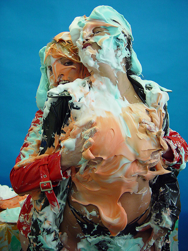 Cos it's freezing bloody cold and about to snow, I thought we all need heating up a bit and what better way than watching Gilly Sampson and Anne-Marie Dixon set to with plenty of pies in their shiniest PVC macs FREE. There are over 30 pictures from the original set (which is much larger and still available to members at http://www.gillysillyhouse.com) so this is just a cream tease of the slippery, slidey action but it certainly warmed my cockles... Just go to http://www.flickr.com/photos/splosh_co_uk to see it and lots of other free pics from our films and archive. Brrrr...illiant!