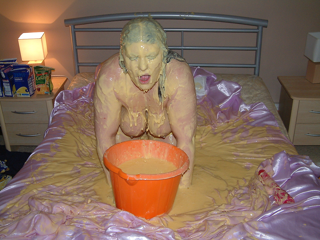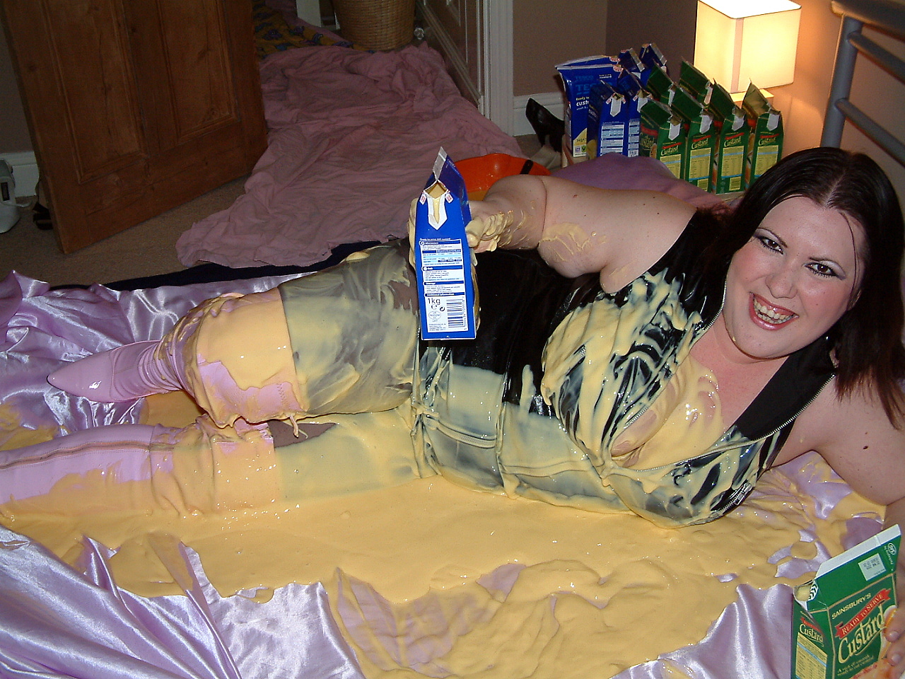 This has got to be your best set ever for me, there's something about you wearing those gorgeous sexy thigh high pink boots, black shiny pvc and all that custard on your bed the word horny springs to mind, but not sure I'm allowed to say that on here, keep up the fabulous work.