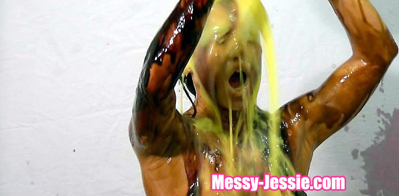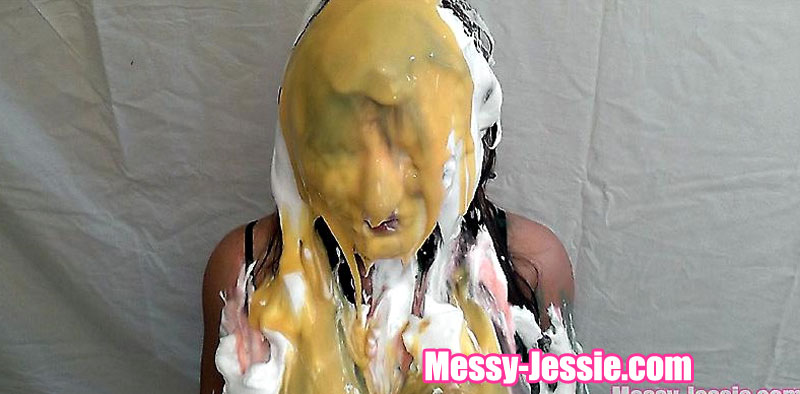The beautiful Amber gets all warm and sticky with custard, syrup and treacle! She covers her naked body from toe to head and massages in all the goo! Amber really enjoyed getting messy and looks stunning all that sticky stuff!