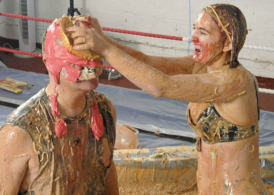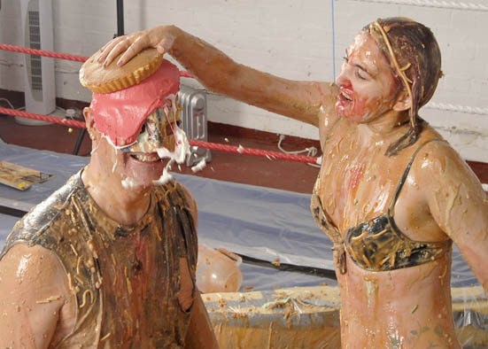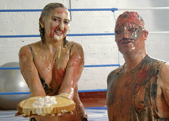 Photos - As we have access to bigger studios now the photos taken under the MessClubSeven handle will be a group effort with me as the camera guy making sure everything working ok. Pic 133 that MuckyPup mentioned with the pie splat caught in motion was one of several taken by the lovely Phoenix. As she will be in the ring for our next big shoot we will try our best to do more pictures like that one