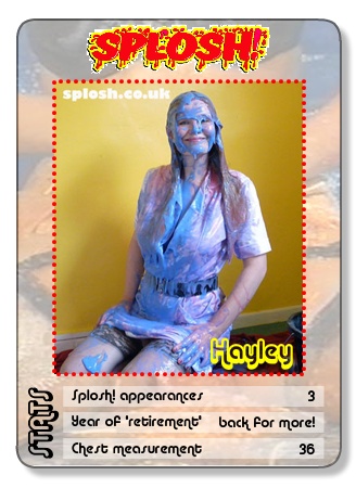 couldn't resist doing two cards for you Hayley, on account of your recent messy return!! I used an image from Splosh! #36 and a more recent one from the blog