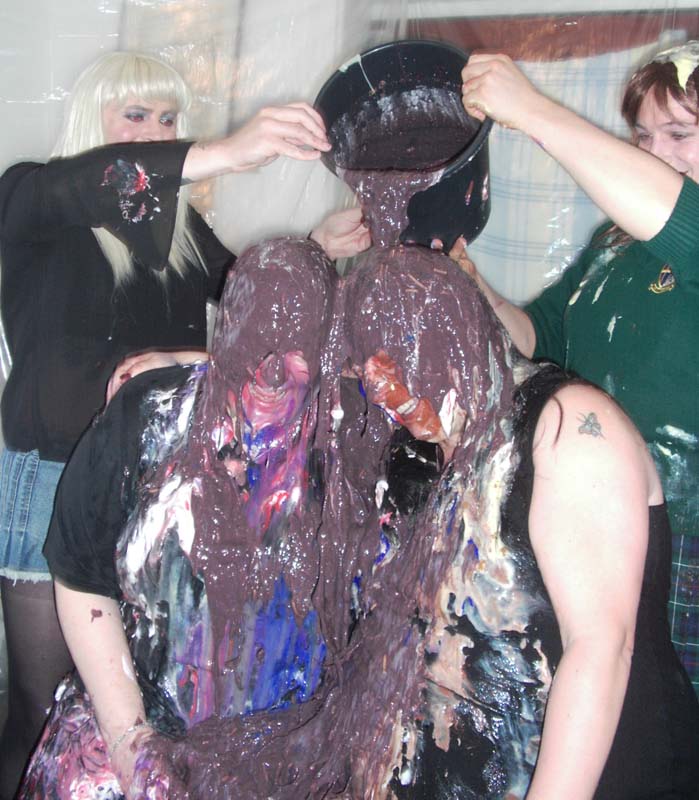 Perhaps something more along the lines of a club or a collective might be in order, an informal group of maniacs coming together every now and then to make mad films and photosets for the hell of it (Wamdrogony had a lot of that about it). I began planning something along those lines post-Wamdrogony, but the project was never realised as a) my focus was elsewhere at the time and b) I was discouraged at having inadvertently produced a graphic concept for the "Sticky Stoat Club" that, as Tits pointed out sheepishly, consisted of a gunged cartoon stoat that looked like Hitler with the initials "S.S.C." underneath. Not my proudest moment.