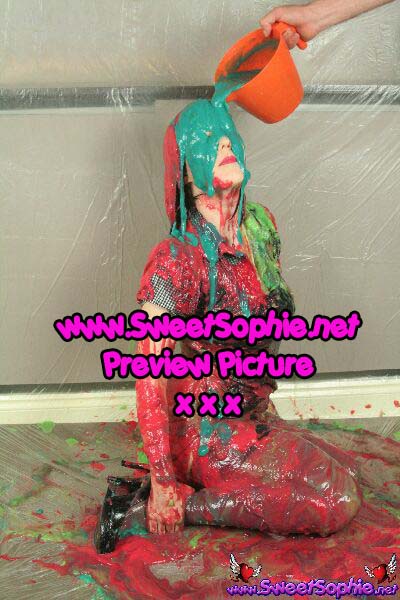 SweetSophie smears different coloured slimes all over her sexy outfit ruining it completely before taking of her slimed t-shirt to slop, rub and smear plenty of handfuls of slimes all over her big sexy boobies :)