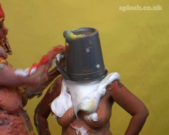 Sorry, you've got me instead, Hue! I have had many a bucket of all kinds of stuff over my head in the last, lets not say how many, years. Some were too disgusting to mention - haha! - but often it was all the leftovers from the previous mess so a horrible mix of sweet, savoury, sticky, slimy, greasy and lumpy. It is an amazing feeling. I really go into a zone of my own, unable to see or hear or, in some cases, breathe! I'm not into breath control normally but I do find that very horny. Then, after the inevitable twist of the bucket, it would be lifted off but often I'd still be cocooned in a messy world of my own. It was only ever broken by one of Bill's favourite moves (and I haven't seen anyone else do it!) namely wiping his hand round the bucket to scoop out what has stayed inside and slapping it in my face! Since I could never see it coming, it was always bit of a surprise! But I'm not alone. I've seen him do that to Gilly and Tigerr too, naughty boy!